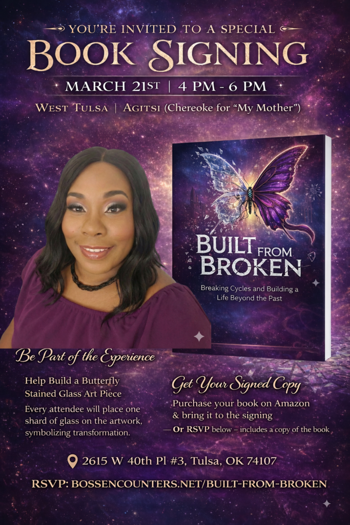 Every book signed/purchased will include one shard of glass for the mosaic butterfly created at the book signing!